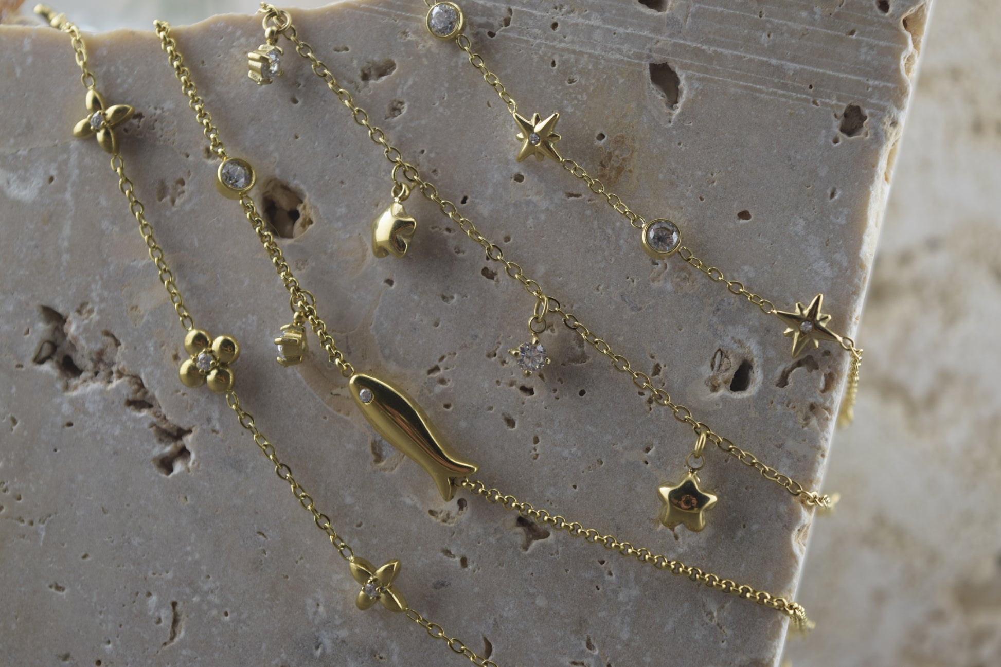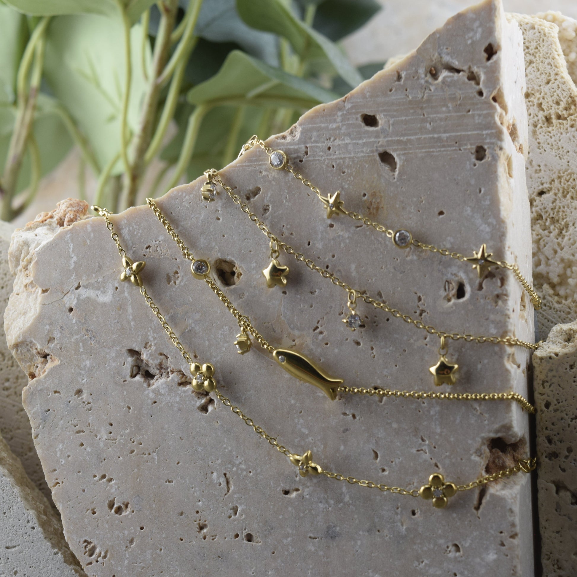 Material: Titanium steel with 18K gold-toned PVD coating; zircon star pendant