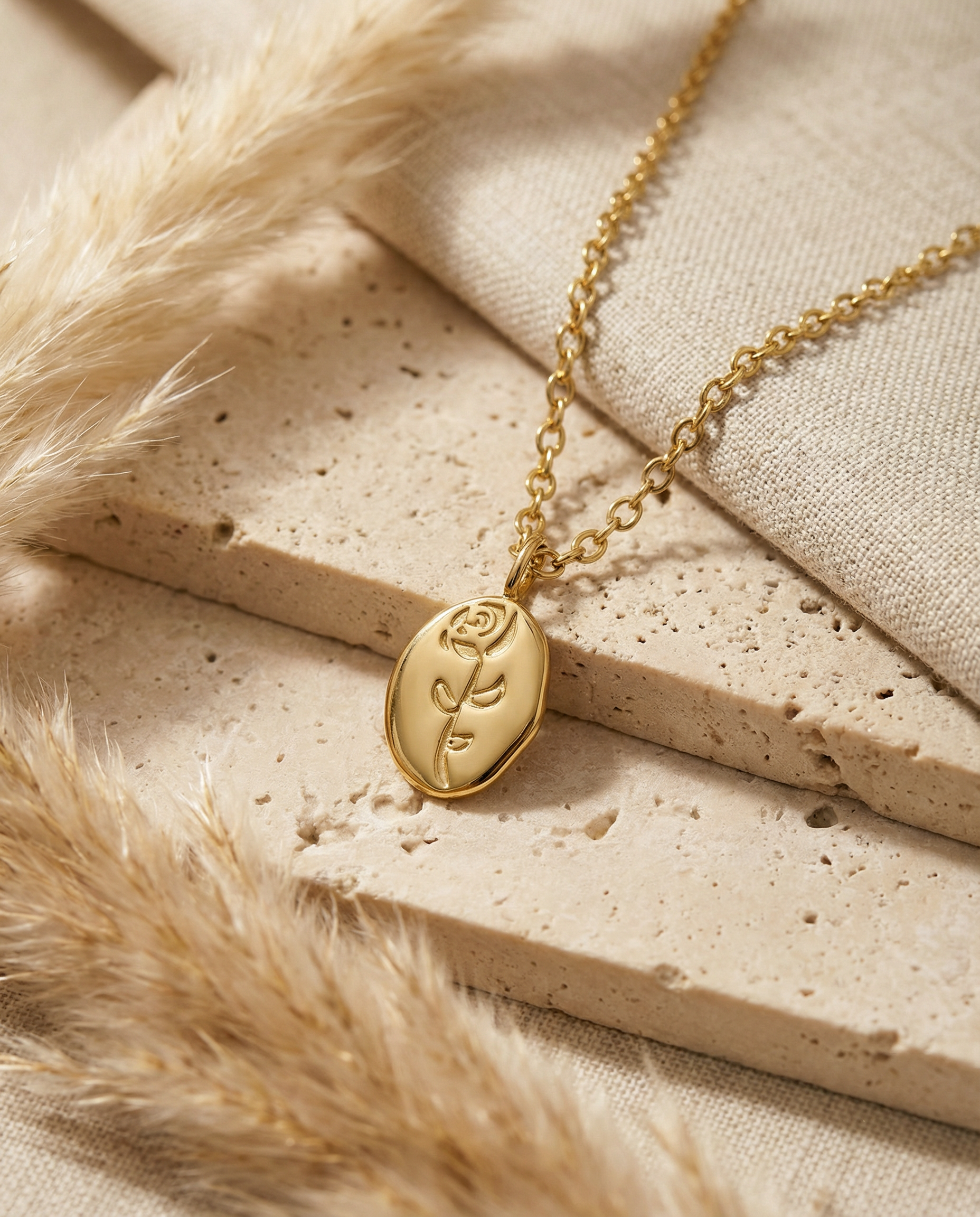 A nature-inspired waterproof gold pendant necklace, the Etched Garden Pendant features a sculpted rose engraving that brings soft, organic elegance to any look. Crafted from premium titanium steel, it’s fully tarnish-free, sweat-proof, and hypoallergenic, making it the perfect everyday necklace for sensitive skin and active lifestyles.